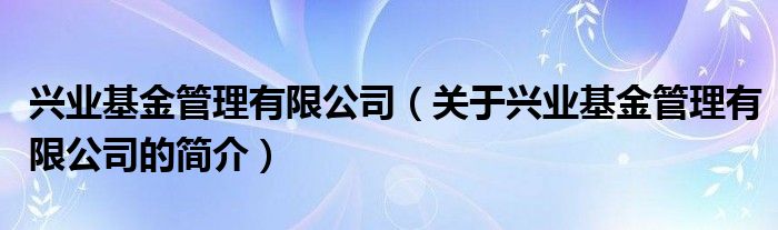 本文關于興業基金管理有限公司的簡介就講解完畢,希望對大家有所幫助。