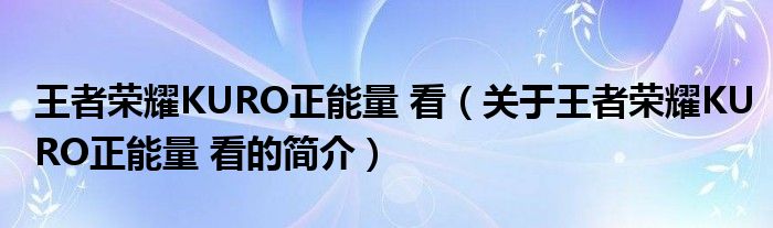 本文關于王者榮耀KURO正能量 看的簡介就講解完畢,希望對大家有所幫助。