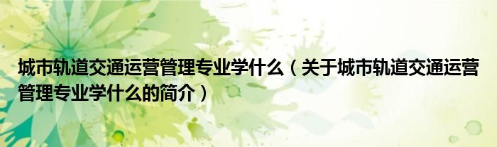 本文關于城市軌道交通運營管理專業(yè)學什么的簡介就講解完畢,希望對大家有所幫助。