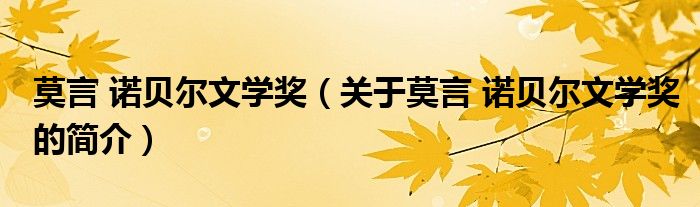 本文關于莫言 諾貝爾文學獎的簡介就講解完畢,希望對大家有所幫助。