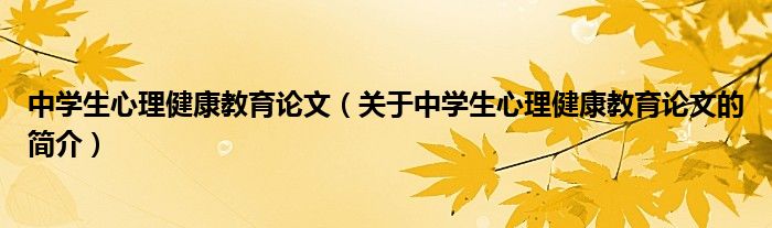 本文關于中學生心理健康教育論文的簡介就講解完畢,希望對大家有所幫助。