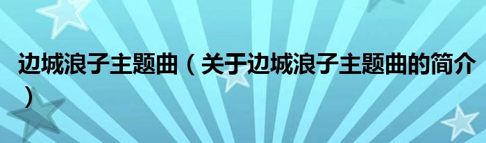 本文關(guān)于邊城浪子主題曲的簡介就講解完畢,希望對大家有所幫助。