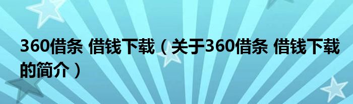 本文關(guān)于360借條 借錢下載的簡(jiǎn)介就講解完畢,希望對(duì)大家有所幫助。