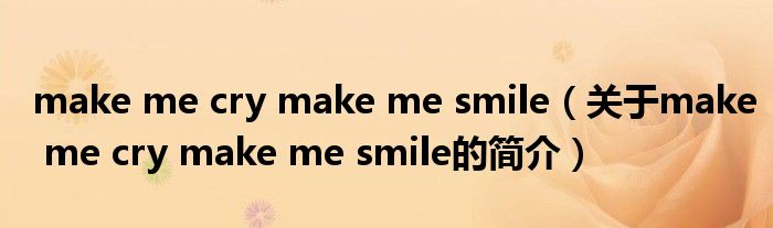 大家好,make me cry make me smile,關于make me cry make me smile的簡介很多人還不知道,現在讓我們一起來看看吧!