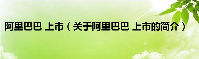 本文關于阿里巴巴 上市的簡介就講解完畢,希望對大家有所幫助。