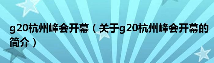 本文關于g20杭州峰會開幕的簡介就講解完畢,希望對大家有所幫助。