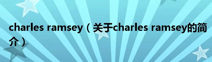 本文關于charles ramsey的簡介就講解完畢,希望對大家有所幫助。