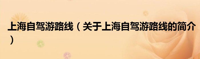 本文關于上海自駕游路線的簡介就講解完畢,希望對大家有所幫助。