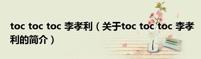 大家好,toc toc toc 李孝利,關于toc toc toc 李孝利的簡介很多人還不知道,現在讓我們一起來看看吧!