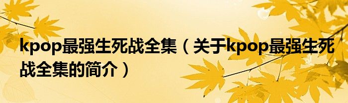 大家好,kpop最強生死戰(zhàn)全集,關于kpop最強生死戰(zhàn)全集的簡介很多人還不知道,現(xiàn)在讓我們一起來看看吧!