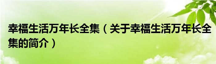 本文關(guān)于幸福生活萬年長全集的簡介就講解完畢,希望對大家有所幫助。