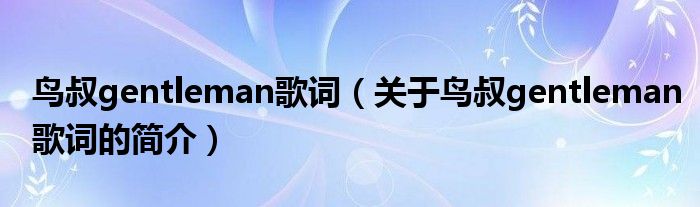 本文關于鳥叔gentleman歌詞的簡介就講解完畢,希望對大家有所幫助。