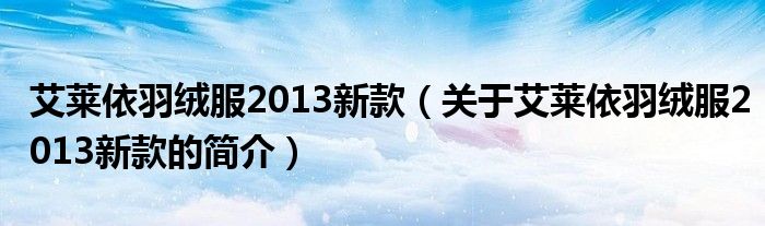 本文關于艾萊依羽絨服2013新款的簡介就講解完畢,希望對大家有所幫助。
