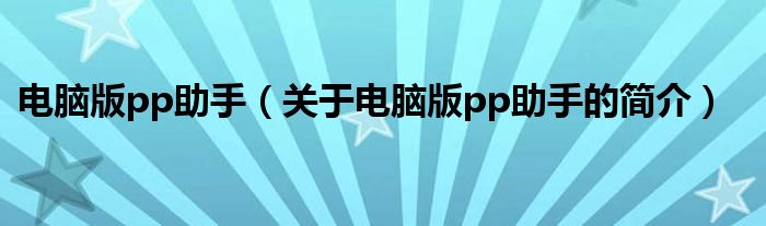 大家好,電腦版pp助手,關于電腦版pp助手的簡介很多人還不知道,現在讓我們一起來看看吧!