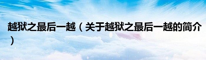 本文關于越獄之最后一越的簡介就講解完畢,希望對大家有所幫助。