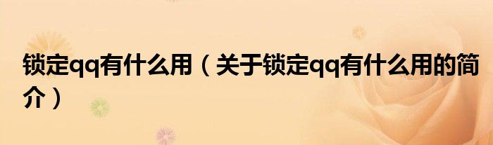 本文關于鎖定qq有什么用的簡介就講解完畢,希望對大家有所幫助。