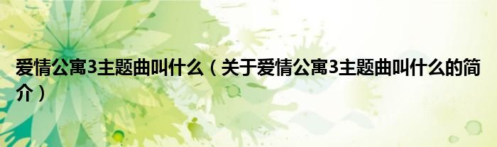 本文關于愛情公寓3主題曲叫什么的簡介就講解完畢,希望對大家有所幫助。