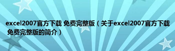 本文關于excel2007官方下載 免費完整版的簡介就講解完畢,希望對大家有所幫助。