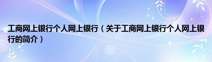 本文關于工商網上銀行個人網上銀行的簡介就講解完畢,希望對大家有所幫助。