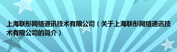 本文關于上海聯彤網絡通訊技術有限公司的簡介就講解完畢,希望對大家有所幫助。