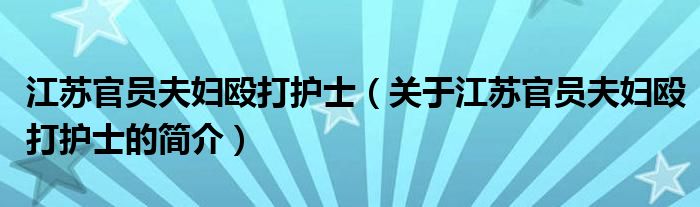 本文關于江蘇官員夫婦毆打護士的簡介就講解完畢,希望對大家有所幫助。