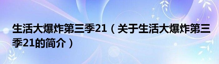 本文關(guān)于生活大爆炸第三季21的簡介就講解完畢,希望對大家有所幫助。
