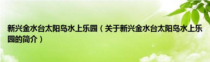 本文關于新興金水臺太陽島水上樂園的簡介就講解完畢,希望對大家有所幫助。