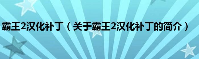 大家好,霸王2漢化補丁,關于霸王2漢化補丁的簡介很多人還不知道,現在讓我們一起來看看吧!