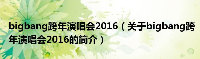 大家好,bigbang跨年演唱會2016,關于bigbang跨年演唱會2016的簡介很多人還不知道,現在讓我們一起來看看吧!