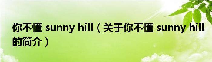 大家好,你不懂 sunny hill,關于你不懂 sunny hill的簡介很多人還不知道,現在讓我們一起來看看吧!
