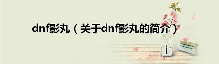 大家好,dnf影丸,關于dnf影丸的簡介很多人還不知道,現在讓我們一起來看看吧!