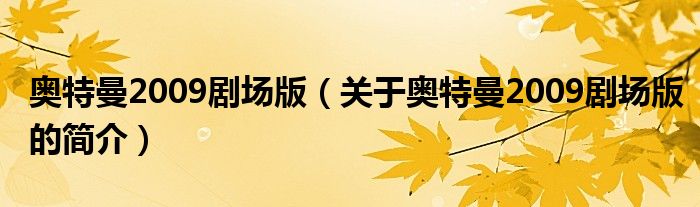 本文關于奧特曼2009劇場版的簡介就講解完畢,希望對大家有所幫助。
