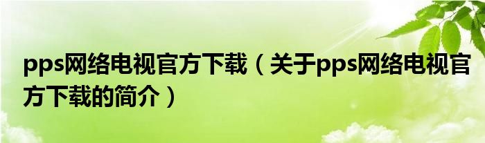 本文關于pps網絡電視官方下載的簡介就講解完畢,希望對大家有所幫助。