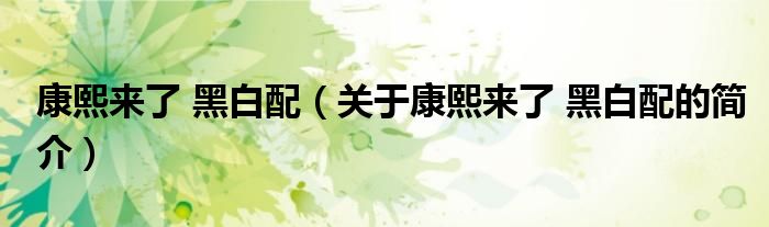 大家好,康熙來了 黑白配,關于康熙來了 黑白配的簡介很多人還不知道,現在讓我們一起來看看吧!