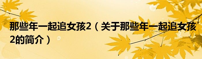 本文關于那些年一起追女孩2的簡介就講解完畢,希望對大家有所幫助。