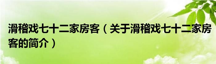 本文關于滑稽戲七十二家房客的簡介就講解完畢,希望對大家有所幫助。