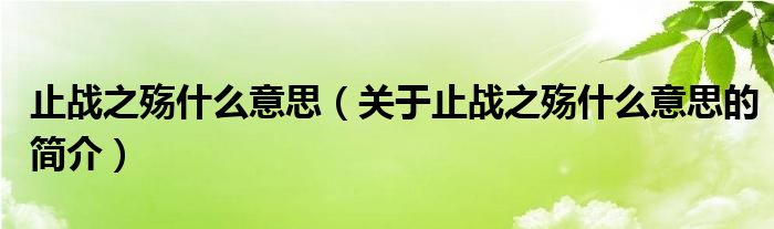 本文關于止戰之殤什么意思的簡介就講解完畢,希望對大家有所幫助。