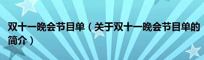 本文關于雙十一晚會節目單的簡介就講解完畢,希望對大家有所幫助。