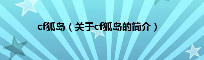 大家好,cf狐島,關于cf狐島的簡介很多人還不知道,現在讓我們一起來看看吧!