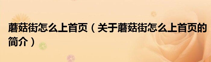 本文關(guān)于蘑菇街怎么上首頁的簡介就講解完畢,希望對(duì)大家有所幫助。