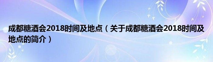 本文關(guān)于成都糖酒會(huì)2018時(shí)間及地點(diǎn)的簡(jiǎn)介就講解完畢,希望對(duì)大家有所幫助。