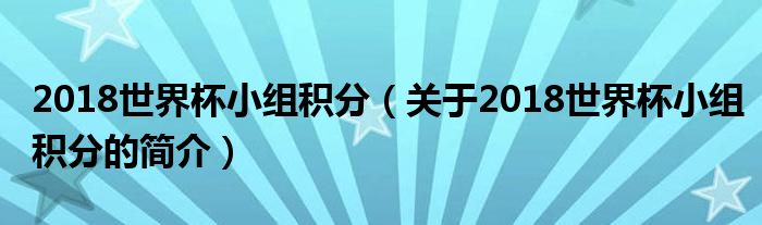 本文關于2018世界杯小組積分的簡介就講解完畢,希望對大家有所幫助。