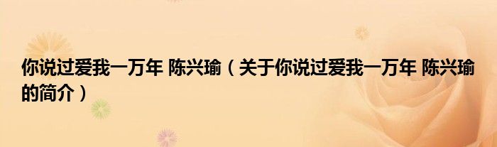 大家好,你說過愛我一萬年 陳興瑜,關于你說過愛我一萬年 陳興瑜的簡介很多人還不知道,現在讓我們一起來看看吧!