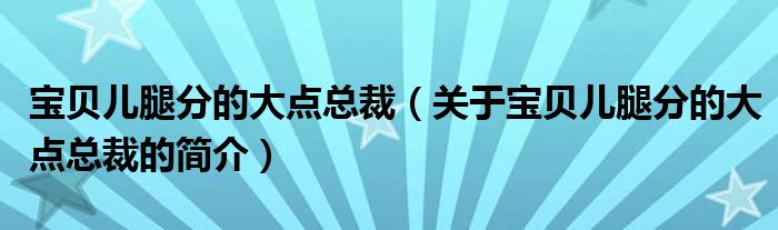 本文關于寶貝兒腿分的大點總裁的簡介就講解完畢,希望對大家有所幫助。