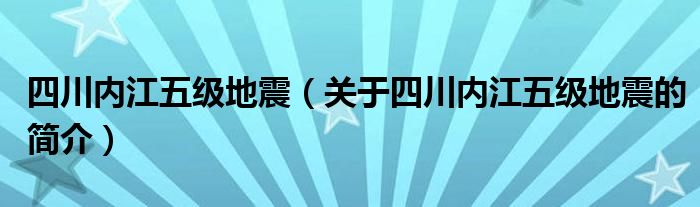 大家好,四川內江五級地震,關于四川內江五級地震的簡介很多人還不知道,現在讓我們一起來看看吧!