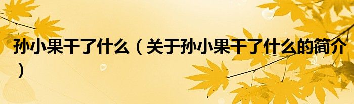 本文關于孫小果干了什么的簡介就講解完畢,希望對大家有所幫助。