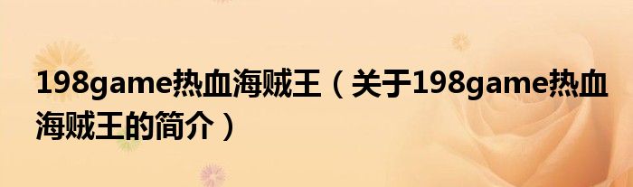 本文關于198game熱血海賊王的簡介就講解完畢,希望對大家有所幫助。