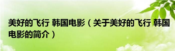 本文關于美好的飛行 韓國電影的簡介就講解完畢,希望對大家有所幫助。