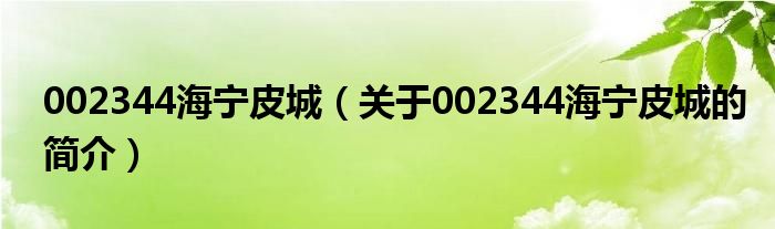 本文關于002344海寧皮城的簡介就講解完畢,希望對大家有所幫助。