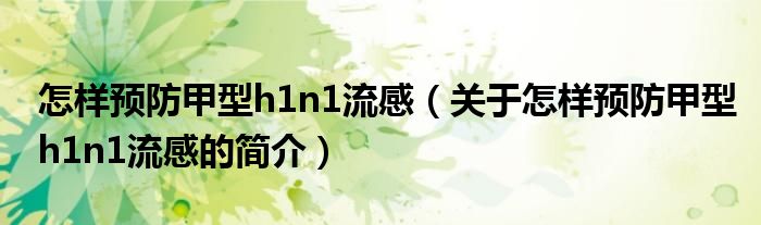 本文關(guān)于怎樣預(yù)防甲型h1n1流感的簡(jiǎn)介就講解完畢,希望對(duì)大家有所幫助。
